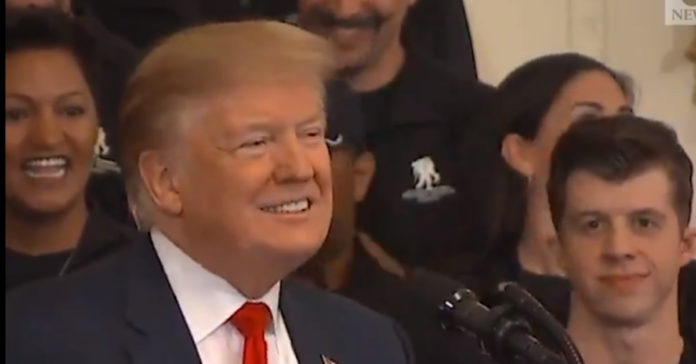 “They’re having a good day. I’m having a good day, too. It was called no collusion. No obstruction,” Trump said to cheers at a Wounded Warriors event at the White House.