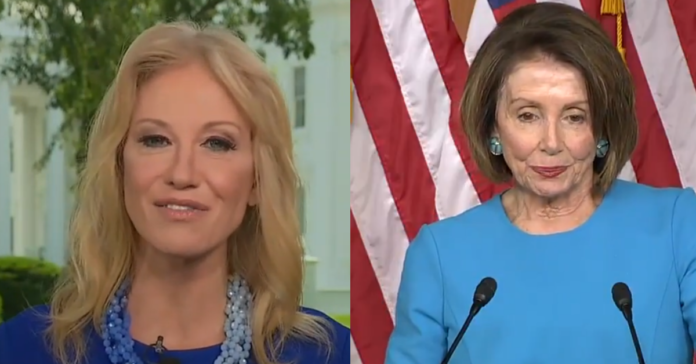 According to Conway, Trump left the meeting “very calmly.” By contrast, Pelosi “stormed out” and did not address the president’s “very specific” reasons for leaving the meeting.